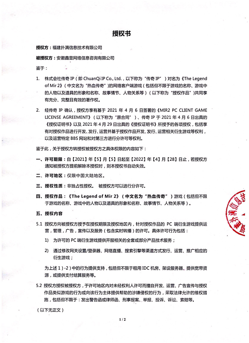關于對《The Legend of Mir 2》(熱血傳奇) 衍生品游戲直播的嚴正聲明